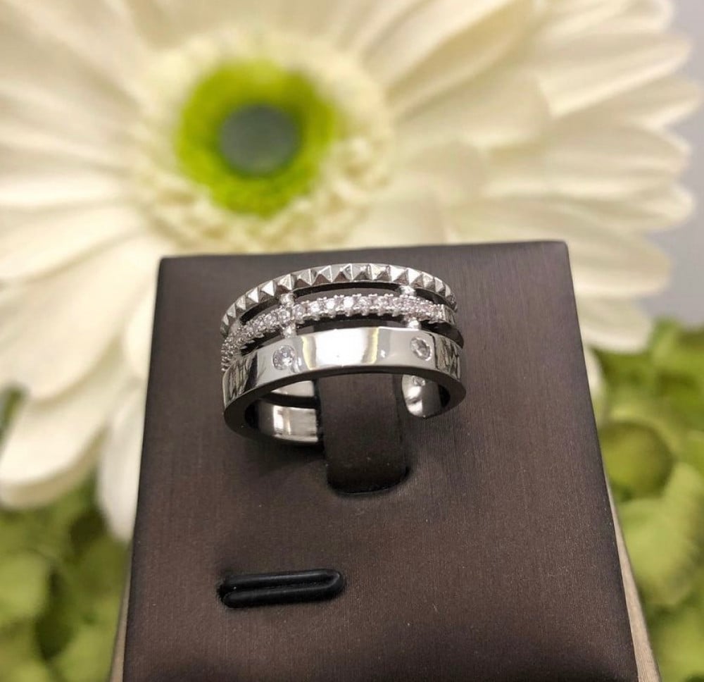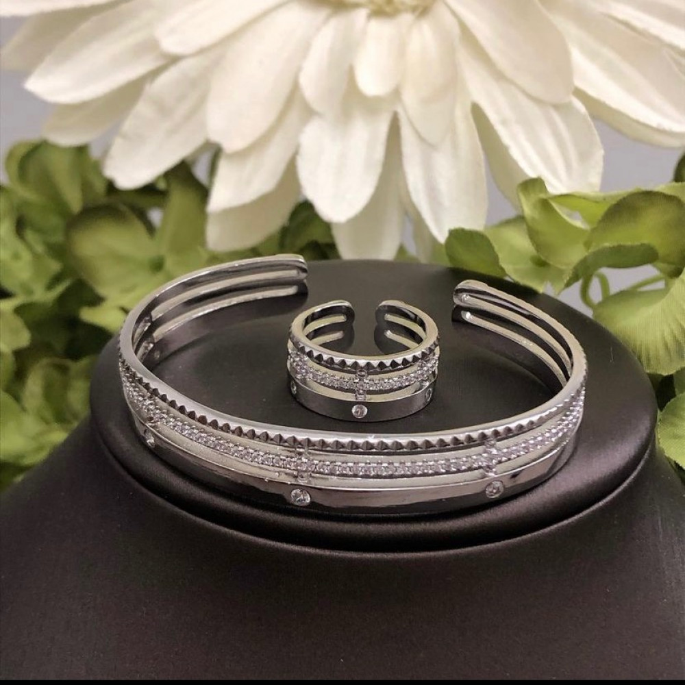 - سوار وخاتم أنيق مطلي ومُطعَّم بفصوص ألماس صناعي "زركون سويسري"