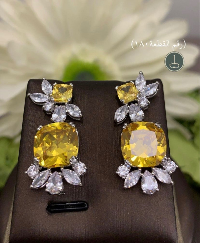 - حلق أنيق مطلي ومُطعَّم بفصوص ألماس صناعي "زركون سويسري"