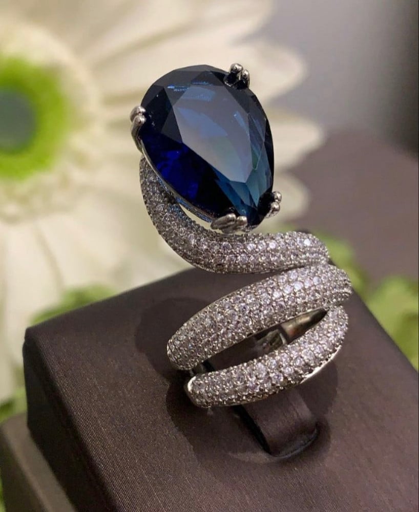• خاتم أنيق مطلي ومُطعَّم بفصوص ألماس صناعي "زركون سويسري"