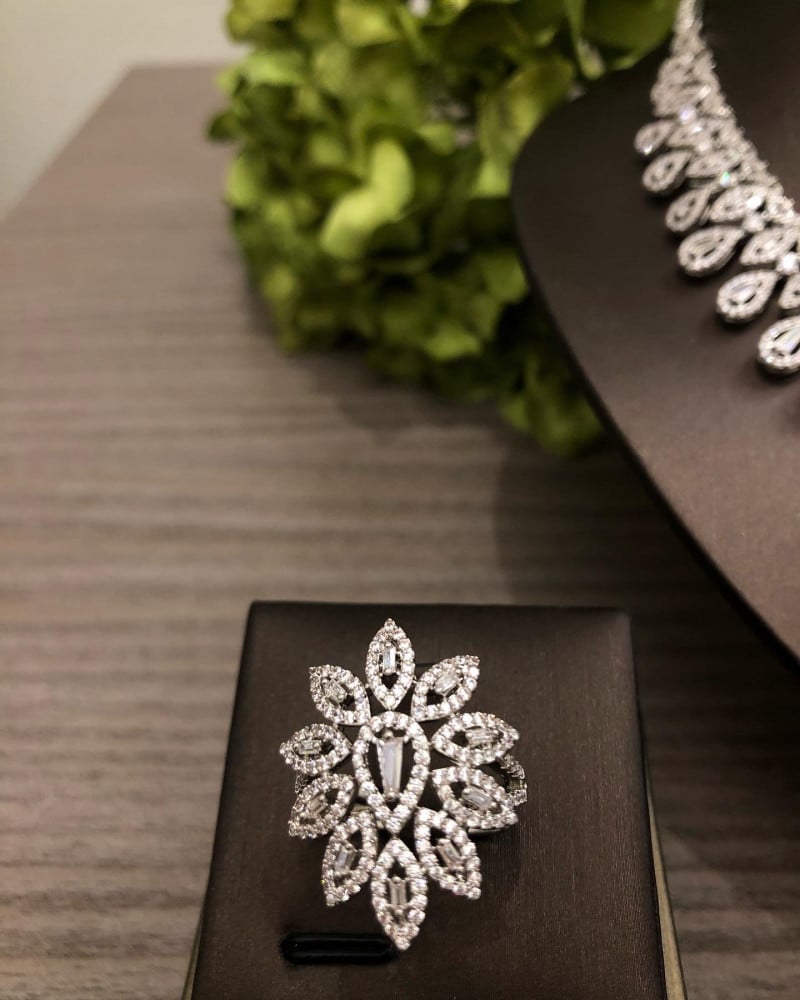 • طقم فاخر وأنيق مطلي ومُطعَّم بفصوص ألماس صناعي " زركون سويسري"