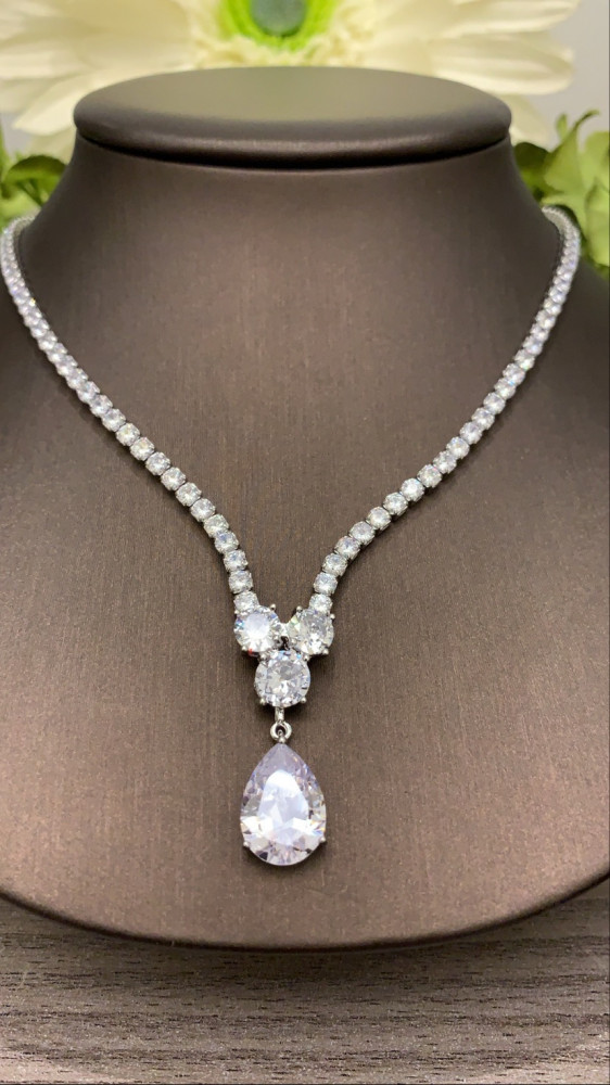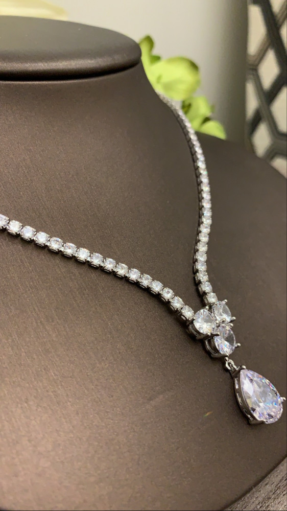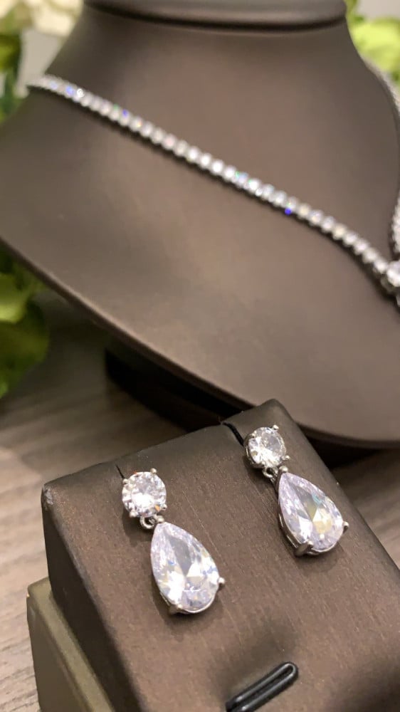 طقم فاخر وأنيق مطلي ومُطعَّم بفصوص ألماس صناعي " زركون سويسري"