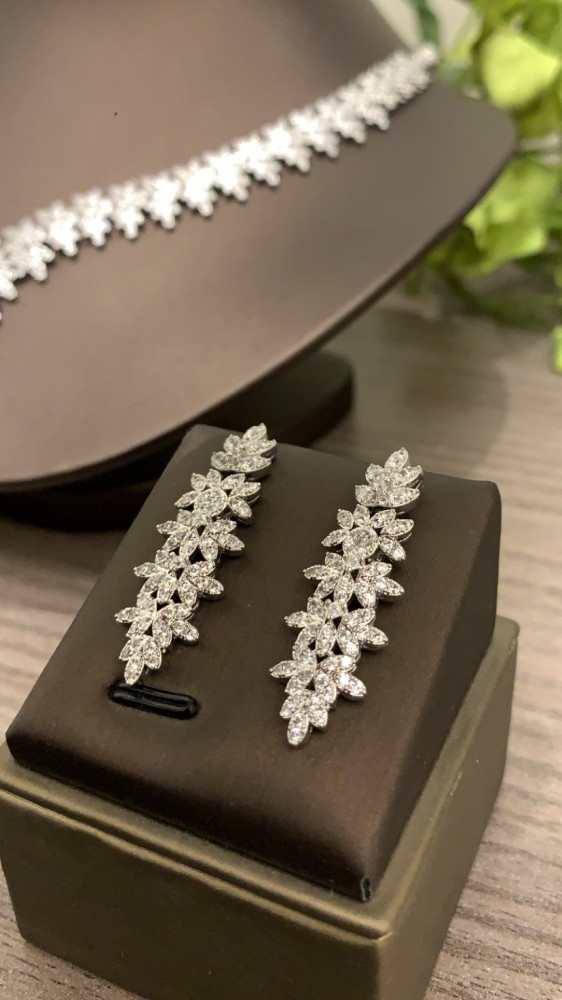 • طقم فاخر وأنيق مطلي ومُطعَّم بفصوص ألماس صناعي " زركون سويسري"