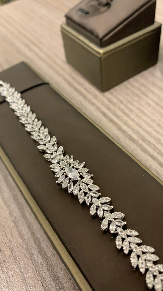 • طقم فاخر وأنيق مطلي ومُطعَّم بفصوص ألماس صناعي " زركون سويسري"